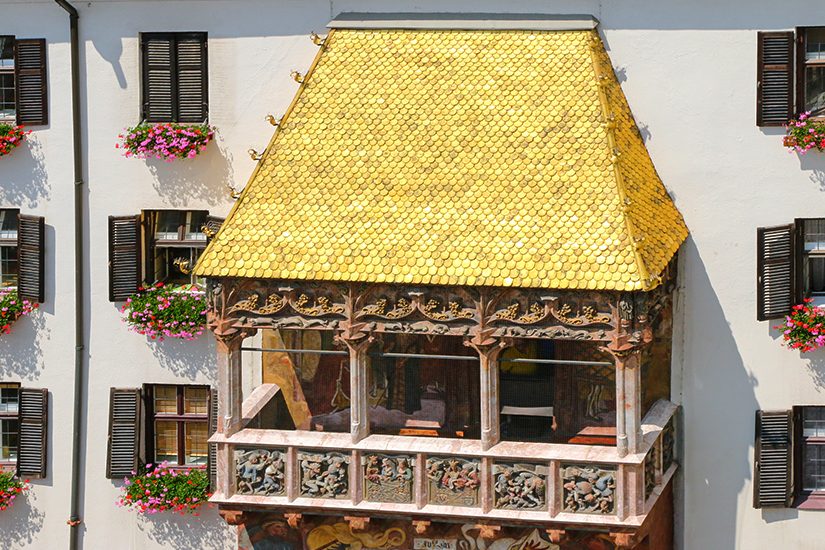 Das wichtigste Wahrzeichen findet ihr mitten in der historischen Altstadt: Es ist das Goldene Dachl. Über 2.600 Kupferschindeln, die feuervergoldet wurden, zieren das royal anmutende Dach des spätgotischen Gebäudes und verleihen ihm seinen besonderen Namen. Schon aus der Ferne werdet ihr das glanzvolle Highlight, das zu Ehren von Kaiser Maximilian I. erbaut wurde, funkeln sehen!