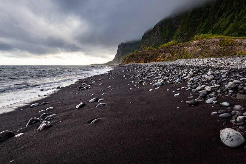 Die Strände von Flores haben einen wilden Charme und verfügen über glasklares Wasser und einen steinigen, manchmal auffällig dunklen Grund, was am Lavagestein liegt. Vorwiegend punkten sie für eine ruhige Auszeit am Atlantik, Naturfotografien oder als Highlight während einer Inselwanderung. Wer sich traut, kann auch baden gehen.