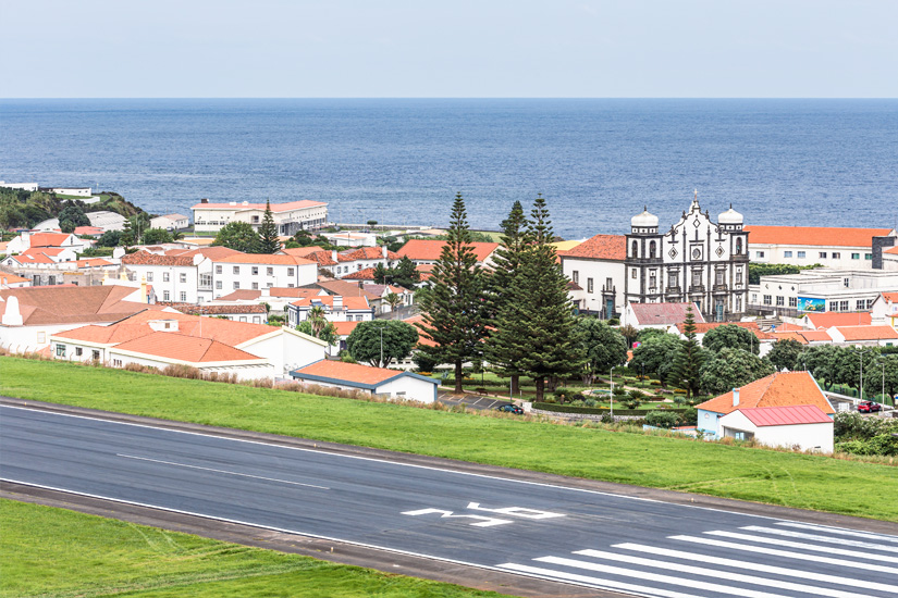 Einmal in Ponta Delgada angekommen, besteht die Wahl, die übrige Distanz per Fähre oder mit dem Flugzeug zu bewältigen. Wer sich für das Flugzeug entscheidet, hat einen Vorteil und landet praktisch mitten im Ort Santa Cruz. Von dort gelangt ihr per Taxi oder Bus zu eurer Unterkunft auf der Insel. Reist ihr mit leichtem Gepäck und hab euch ein Hotel in Santa Cruz ausgesucht, könnt ihr sogar zu Fuß gehen.
