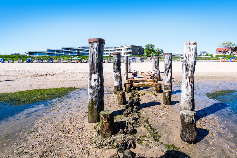 Normalerweise ist das Bad im Meer auf Föhr nur bei Flut möglich. Eine Sonderstellung nimmt diesbezüglich aber der Strand von Utersum beim gleichnamigen Dorf ein. Durch den dortigen Priel mit dauerhafter Wasserführung könnt ihr unabhängig der Gezeiten baden gehen. An der Küste gibt es Abschnitte für Urlauber mit Hund und Bereiche, in denen zum Beispiel Beachvolleyball gespielt werden kann. Die Infrastruktur ist mit einem Strandkorbverleih, sanitären Anlagen und Surfschulen gut.