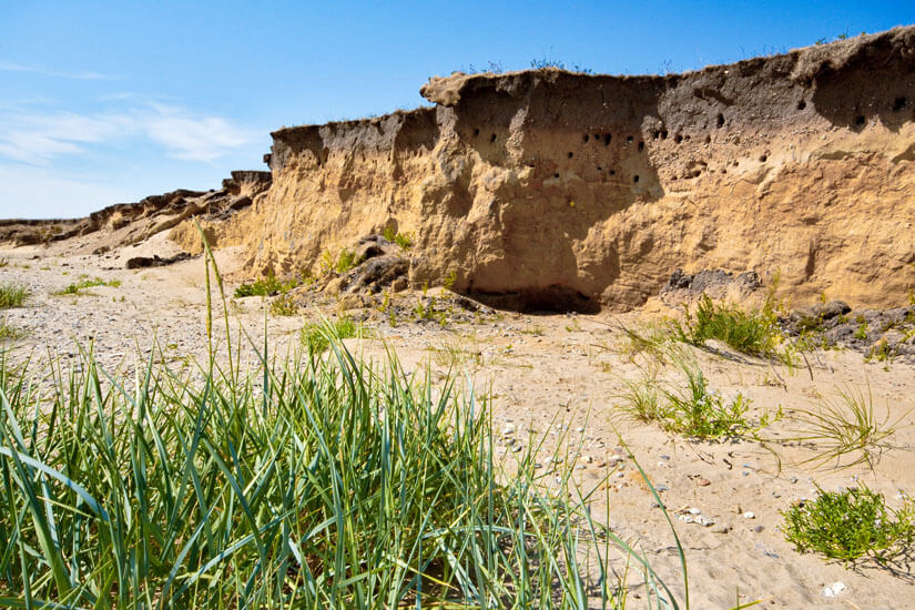 Das Goting Kliff begrüßt die Besucher mit einer anderen Kulisse, nämlich einer felsigen Steilküste, die bis zu neun Meter hoch ist. Auf etwas weniger als zwei Kilometern Fläche könnt ihr den Verlauf der Felsen beobachten, die während einer Eiszeit geformt wurden. Der Sandstrand ist aber abseits des Spaziergangs auch bestens zum Sonnenbaden, Sandburgenbau oder ein ausgiebiges Bad in der erfrischenden Nordsee geeignet.