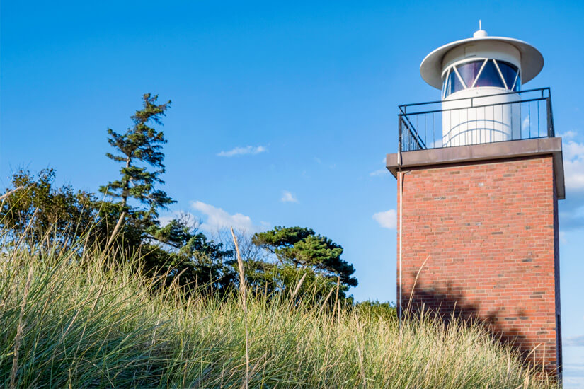 Leuchttürme sind für viele Besucher an der Küste ein gern gesehener Fotospot. Der Leuchtturm Olhörn mag zwar mit etwa acht Metern Höhe nicht besonders groß und mit seinen rotbraunen Klinkern in seinem Umfeld kaum auffällig sein, dient aber trotzdem als Anziehungspunkt für viele Gäste von Föhr. Seine Entstehung geht auf das Jahr 1953 zurück, als er die zuvor präsente Leuchtbake aus dem 19. Jahrhundert ersetzte. Inzwischen wird er aus der Ferne gesteuert, dient jedoch noch immer der Navigation von Schiffen zwischen dem Festlandhafen Dagebüll und den Inseln Föhr und Amrum.