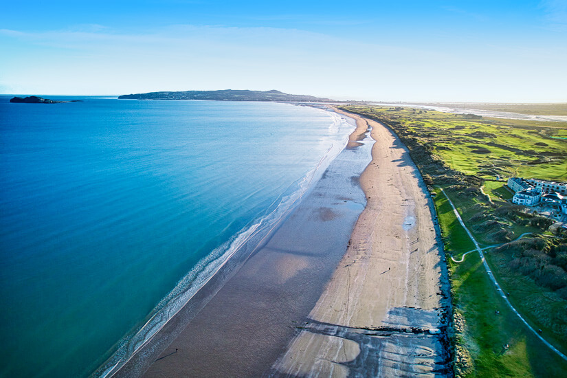 Am nordöstlichen Rand der irischen Metropole gelegen, erreicht ihr Portmarnock mit dem Bus H2 in Richtung Malahide in etwa 40 Minuten von der Dubliner Innenstadt. Von Portmarnock aus führt ein schöner Fußweg durch die Dünen- und Graslandschaft an die Küste. Mit dem Mietwagen könnt ihr sogar direkt bis zum Strand fahren. Im Ort gibt es Restaurants und Supermärkte, falls ihr keine Verpflegung dabeihabt.