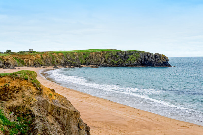 Überraschend ruhig ist das Wasser an vielen Tagen. Wenn ihr bei Flut anreist, ist oft nicht viel zu sehen von dem herrlich gelegenen Sandstrand – das Wasser dringt in die kleine Bucht ein und überschwemmt sie in Teilen. Bei Ebbe wiederum wird schnell klar, weswegen Irland auch Emerald Isle genannt wird: Das Wasser am Baginbun Beach ist klar und erinnert farblich an einen Smaragd. An warmen Tagen macht das Baden an einer solch pittoresken Stelle viel Freude. Bedenkt beim Baden, dass keine Rettungsschimmer anwesend sind.