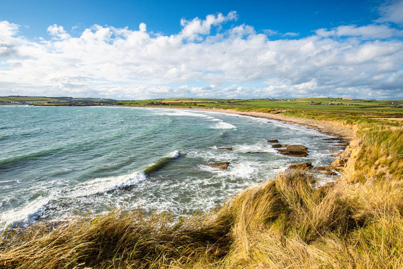 Langsam geht die Graslandschaft in die Dünen über, die euch den Zugang zum Strand gewähren, der bei Flut zweigeteilt ist. Ein Besuch bei Ebbe ist deswegen eher zu empfehlen, da sich die Gelegenheit für kleine Wanderungen an der Küste bieten. Rundherum säumen steile Klippen den Strand, das klare Wasser ist smaragdfarben und unterstreicht die Magie dieser Landschaft. Das kleine, vorgelagerte Rough Island erweckt den Eindruck, als wolle sich das Land ganz langsam an den Atlantischen Ozean tasten. Strandbars oder sonstige Infrastruktur sucht ihr hier vergebens, diese Dinge würden der umwerfenden Bucht, auch bekannt als Boyeeghter Bay, den Zauber nehmen. Falls ihr im 73 km entfernten nordirischen Londonderry weilt, solltet ihr die Gelegenheit nutzen, um vorbeizuschauen.