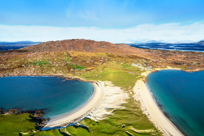Ein unfassbar toller Strand, etwa 80 Kilometer westlich von Galway, ist Dog’s Bay. Hierbei handelt es sich um eine geschützte kleine Bucht in der Form eines Hufeisens, die von zwei Seiten von Felsen eingefasst ist. Nur das östliche Ende gewährt Besuchern Zugang. Der helle Strand erinnert an die Karibik, das smaragdfarbene Wasser tut sein Übriges, um diesen Eindruck zu bestätigen. Die Besonderheit des Sandes sind die Schalen winziger Meeresbewohner sowie die Muschelfragmente. Diese verleihen dem Strand seine reinweiße Farbe. Dog’s Bay befindet sich übrigens auf einer Landenge. Auf der anderen Seite dieses Isthmus befindet sich der beinahe ebenso zauberhafte Gurteen Beach.