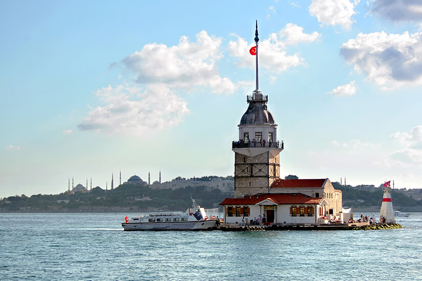 Wählt für eine Aussicht über Istanbul zwischen dem Leanderturm und dem Galataturm. Ersterer ist ein Leuchtturm, befindet sich auf einer kleinen Insel inmitten des Bosporus und verfügt über eine herrliche Aussichtsterrasse. Zweiter liegt nördlich vom Goldenen Horn und belohnt euch mit einem Panoramablick über Istanbul und die Meerenge.
