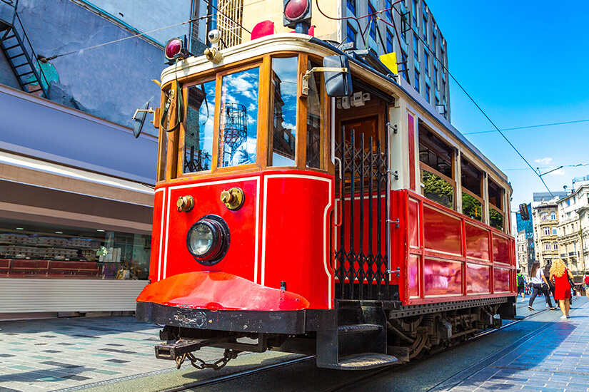 Viele Sehenswürdigkeiten wie die Hagia Sophia, die Blaue Moschee und die Cisterna Basilica befinden sich unmittelbar nebeneinander und sind daher problemlos zu Fuß zu besichtigen. Für weitere Strecken könnt ihr zwischen Taxen, der traditionellen Straßenbahn und der U-Bahn wählen. Doch Vorsicht: Nicht alle U-Bahn-Systeme sind direkt miteinander verbunden. Wenn ihr euch für eine Taxifahrt entscheidet, ist die Variante mit Taxameter in der Regel günstiger als ein Pauschalpreis.