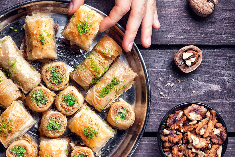Die Türkei gilt als Land der kulinarischen Vielseitigkeit. In Istanbul habt ihr die Gelegenheit, euch durch Köstlichkeiten zu probieren. Vorspeisen wie Humus oder Joghurtspeisen nehmen euch schon den ersten Hunger. Anschließend verführen euch Leckerbissen wie gefüllte Muscheln oder die würzigen Köfte – Hackbällchen aus Fleisch vom Rind oder Lamm. Reichhaltige Gewürze machen das Ganze zum Erlebnis für alle Sinne. Und auch für Naschkatzen gibt es nicht nur dank Halva (eine Mischung aus Zucker und Sesamöl) und süßem Baklava (gefülltem Blätterteig) sicherlich genügend Auswahl. Als Snack für unterwegs oder zum Frühstück bekommt ihr an fast jeder Ecke Simit, die leckeren Sesamkringel. Mehr zur türkischen Küche…