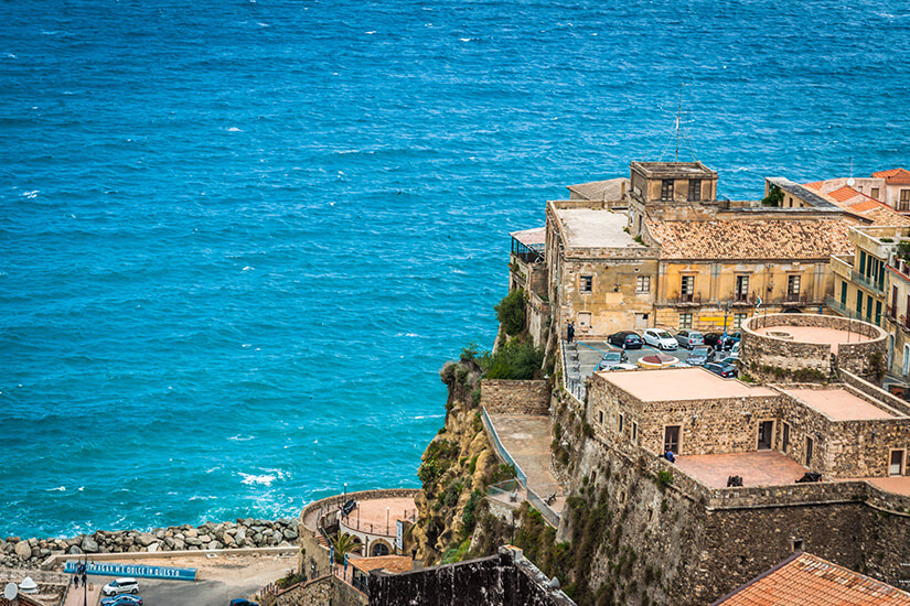 Rund um den Badeort Tropea befinden sich die zahlreichen Buchten, die Kalabrien von einer der schönsten Seiten zeigen. Bei der ganzen Meeresschönheit solltet ihr euch aber trotzdem ein besonderes Highlight nicht entgehen lassen: Die Benediktinerkapelle „Santa Maria dell‘Isola“, von der aus ihr einen wunderbaren Blick quer über diesen Teil Kalabriens genießen könnt.