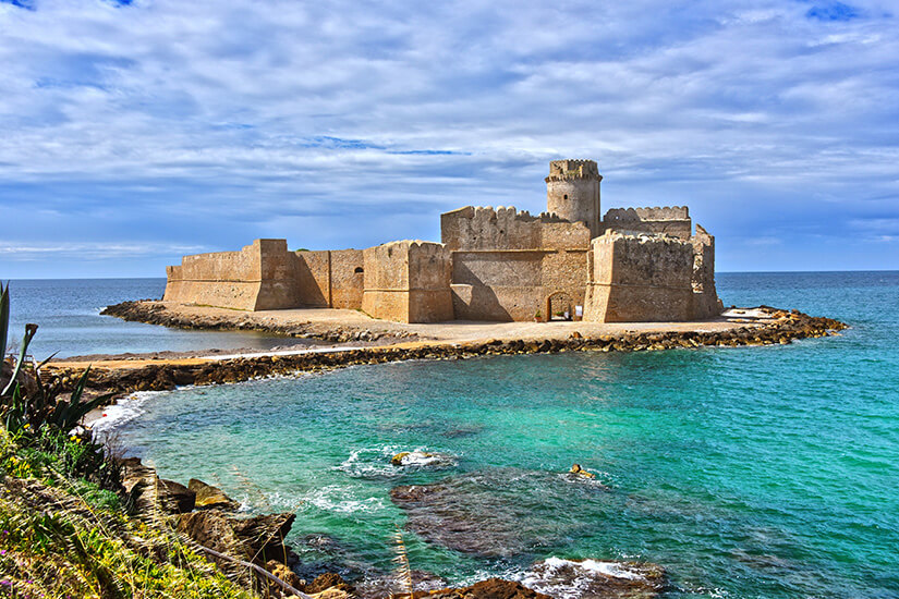 Fernab vom Zentrum des touristisch ausgelegten Badeurlaubs in Tropea findet sich der Ort Capo Rizzuto, der, eingebettet in das größte Meeresschutzgebiet Italiens, pure Ruhe und Erholung verströmt. Entdeckt hier nicht nur eine Möglichkeit, entspannt zu baden, zu schwimmen und euch die Sonne auf den Bauch scheinen zu lassen, sondern besucht auch das mitten im Meer erbaute Kastell. Dieses macht den Strandurlaub vor dieser Kulisse zu etwas Besonderem!
