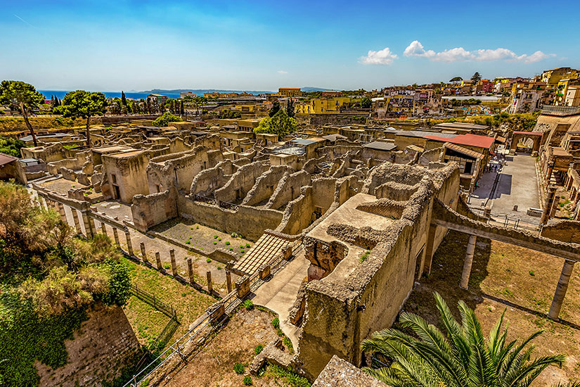 Herculaneum ist ebenfalls eine Ausgrabungsstätte, wenn auch weniger bekannt als Pompeji. Das tut der Schönheit der Ruinenstadt allerdings keinen Abbruch. Während in Pompeji die großen Prachtbauten dominieren, zeigt sich Herculaneum bescheidener. Daher rührt sicher auch die Bezeichnung „Pompejis kleine Schwester”. Zudem trumpft der Ort mit einer Besonderheit auf. Da die Auswirkungen des Vulkanausbruchs, denen auch Pompeji zum Opfer fiel, in Herculaneum anders ausfielen, sind die Häuser erstaunlich gut erhalten. So könnt ihr das Leben in der alten Stadt noch besser nachvollziehen. Schaut euch die kleinen Häuser und ehemaligen Geschäfte an .