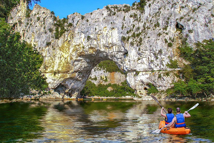 Wer bereits Erfahrung hat, kann nahe der Quelle eine Kanufahrt beginnen und trifft hier beim Oberlauf nach starken Regenfällen auf Szenarien ähnlich dem Rafting im Wildwasser. Weniger abenteuerlich, aber dennoch sportlich ist der Mittellauf: Wer Kanufahrten zwischen Aubenas und Ruoms unternimmt, genießt Landschaften und manövriert sich durch Kiesbankschwalle. Der Mittellauf ist auch für Familien ideal, die mit Kindern eine ruhige Fahrt bevorzugen, da alle Schwalle umfahren werden können und abseits von ihnen der Fluss ruhig fließt. Der Unterlauf der Ardèche führt euch durch die Schlucht Gorges de l’Ardèche. Ein Blick vom Kanu zu den gut 300 Meter hohen Felswänden ist ein absolutes Highlight beim Kanufahren auf der Ardèche.