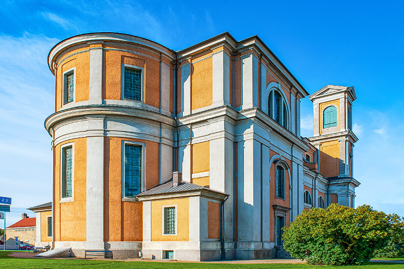 Die Friedrichskirche, schwedisch: Fredrikskyrkan, ist ebenso wie der Marinehafen Teil des UNESCO-Welterbes. Das im barocken Stil gestaltete Gotteshaus ist etwas jünger als der Hafen, denn es wurde im 18. Jahrhundert als Ersatz für eine Holzkirche erbaut. Noch mehr Zeit wurde für die Fertigstellung der Kirchtürme benötigt. Das heutige Bild des Sakralbaus beruht auf zahlreichen Restaurierungen, die unter anderem im frühen 19. Jahrhundert stattfanden.