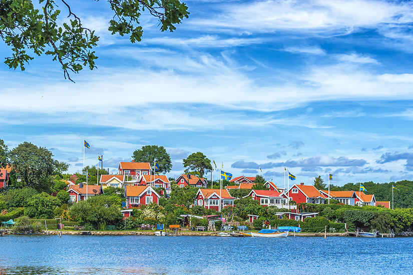 Wer sich eines der typischen Postkartenmotive von Schweden als eigenes Foto sichern möchte, kann dies von der Straße „Dragsövägen“ auf einer separaten Insel aus tun. Denn aus dieser Position schaut ihr genau auf die sogenannte „Brändaholms Kolonistugor“, eine Kleingartensiedlung mit den klassisch rot angemalten „Schwedenhäuschen“. Das Foto ist eine tolle Erinnerung und, nett eingerahmt, auch ein hübsches Geschenk.