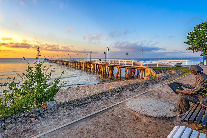 Seid ihr mit der Fähre ab Gdingen (Gdynia) angereist, könnt ihr dort auf dem Rückweg einen längeren Stopp einlegen. Es lohnt sich, am berühmten südlichen Seesteg entlang zu flanieren oder an einem der Ostseestrände noch mehr zu entspannen. Hat euch das Marinemuseum in Karlskrona gefallen, ist der Besuch eines der drei Museumsschiffe wie dem ORP Burza angeraten. Eine Stippvisite in Richtung Danzig mit Highlights wie der Marienkirche ist auch nicht verkehrt. Ab der Hafenstadt Gdingen sind lediglich knapp 30 Minuten Fahrt nötig.