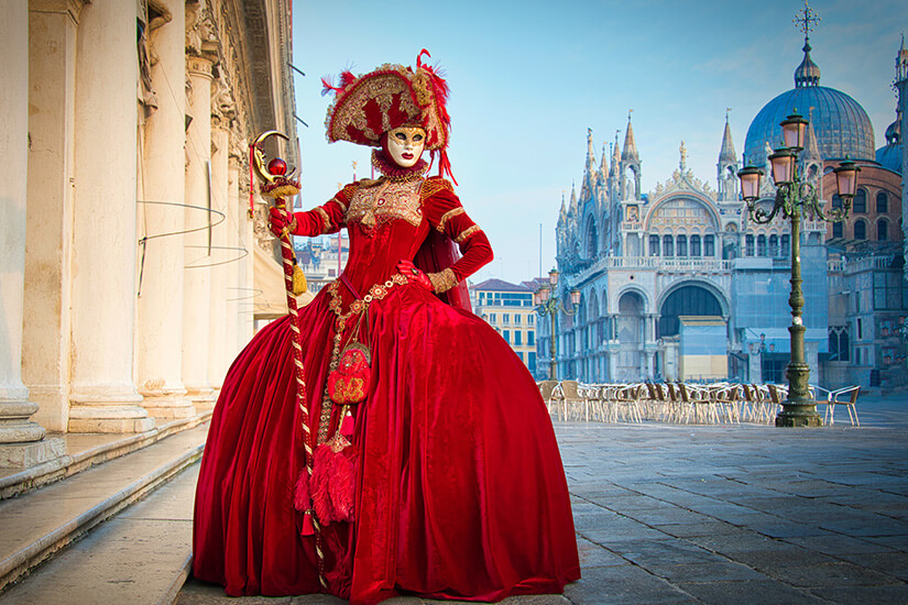 Der Karneval ist in Venedig eine bis in das zwölfte Jahrhundert zurückreichende Tradition. In vergangenen Zeiten wurden Maskenbälle veranstaltet, Opernaufführungen besucht und – heute unvorstellbar – den Männern als hässlich erscheinende Frauen mit Eiern beworfen. Wenig Grund zur Freude hatten um diese Jahreszeit auch die Ochsen, denn sie wurden zuhauf auf dem Markusplatz geschlachtet. Des Weiteren frönte man dem Glücksspiel. Nachdem die Republik Venedig auf Initiative Napoleons 1797 Österreich angegliedert wurde und es wirtschaftlich bergab ging, verlor das tolle Treiben an Bedeutung und wurde eher ins Private verlagert. Erst in den 70er-Jahren des vorangegangenen Jahrhunderts erfuhr der Karneval in Venedig eine Wiederbelebung. Auch wenn das fest nicht unbedingt von der örtlichen Bevölkerung selbst gefeiert wird, lohnt sich ein Besuch dieser besonderen Stadt zur närrischen Zeit vor allem für Freunde historischer Kostüme.