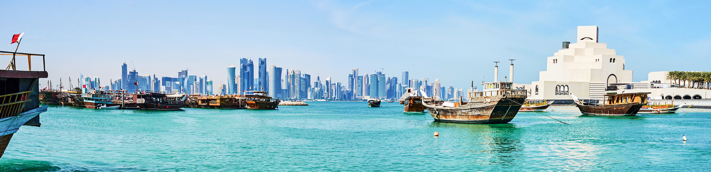 Katar, manchmal auch Qatar geschrieben, mixt sein traditionell orientalisches Flair gekonnt mit modernen Elementen. Eure Reise auf die Arabische Halbinsel kann ebenso vielseitig ausfallen: Legt den Fokus auf einen Abenteuerurlaub in der Wüste, einen Badeurlaub an der Küste, Sightseeing in Doha – oder kombiniert nach Belieben!