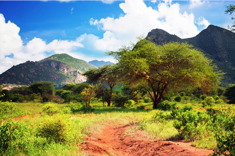 Der Tsavo Nationalpark ist in zwei Teile untergliedert: Tsavo-Ost und Tsavo-West. Damit ist er der größte Nationalpark von Kenia und vor allem für seine Elefanten- und Löwenpopulation berühmt. Im Inneren erwarten euch zudem weitere Highlights wie der Galana Fluss oder eine einmalige Sicht auf den Kilimandscharo. Die Tsavo Nationalparks sind somit optimale Anlaufstellen für eine Safari und haben auch landschaftlich eine Menge zu bieten: Savannen, Oasen, Vulkane oder die wunderschönen Mzima Springs.