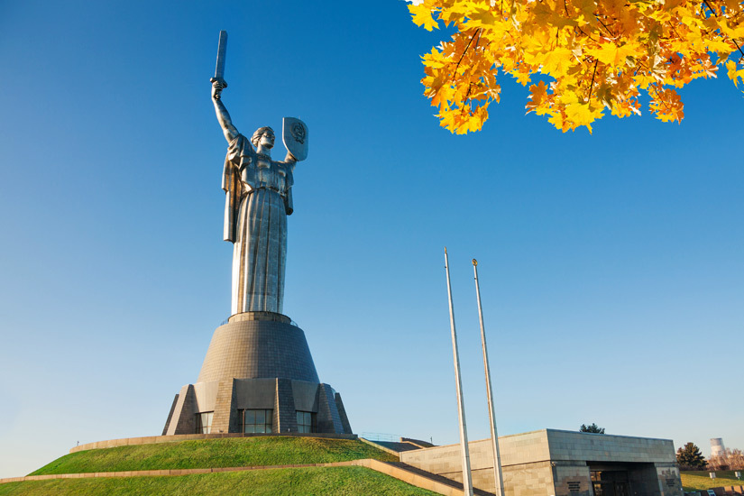 102 Meter hoch ragt die Mutter-Heimat-Statue in den Himmel. Diese Höhe beschert ihr den Titel der höchsten Frauenskulptur weltweit. Zudem kann sie sich in der Top 5 der allgemein höchsten Statuen behaupten. In den 1960er-Jahren wurde sie eingeweiht und soll an den Sieg der sowjetischen Streitkräfte im Zweiten Weltkrieg erinnern. Von der Aussichtsplattform der Mutter-Heimat-Statue aus genießt ihr einen tollen Blick über Kiew. Auch das Gelände selbst hat noch so einige Highlights für euch parat; beispielsweise ein Museum, das wir euch später vorstellen.