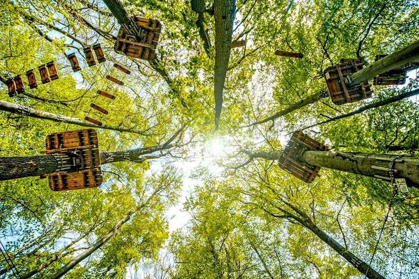 18 Parcours und mehr als 200 Kletterelemente markieren die üppige Ausstattung dieses Hochseilgartens in Duisburg in Nordrhein-Westfalen. Integriert in den natürlichen Baumbestand des Waldes, dürft ihr euch auf eine authentische Kulisse und viele spannende Abenteuer freuen. Der Höhenunterschied beträgt im schwierigsten Fall sogar 24 Meter – also fragt euch unbedingt vorab, wie schwindelfrei ihr wirklich seid!
