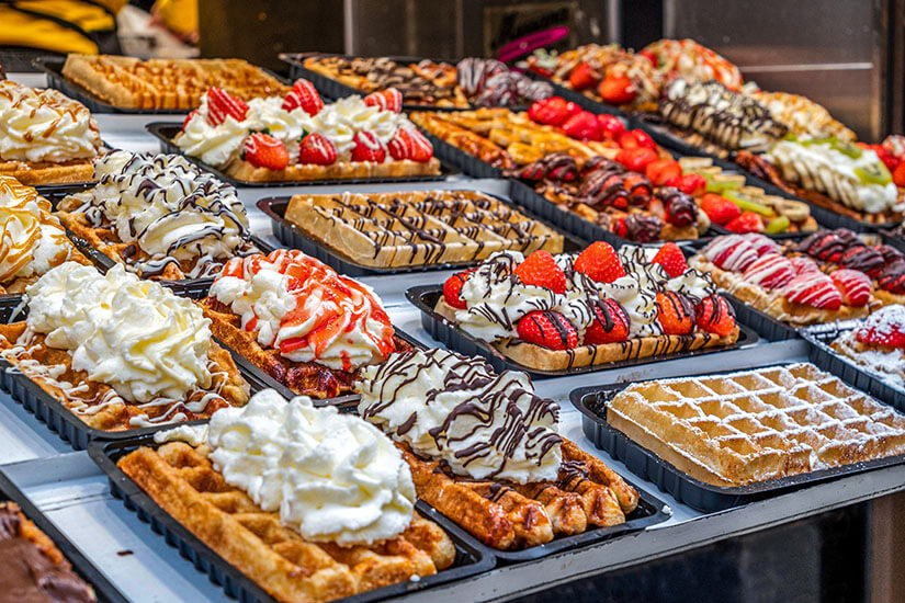 Eine Reise nach Knokke-Heist ohne belgische Pommes frites, Waffeln und Schokolade zu genießen ist kein richtiger Urlaub. Neben den berühmten Leckereien empfehlen wir euch regionale Produkte wie Sanddornpralinen und Nordseekrabben oder typische Spezialitäten aus Knokke-Heist zu probieren. Knocks Polderbrood, ein kleines Weizenbrot mit dem Logo von Knokke und das Eis von Hazegras und Bij Sandy-Roomijs sind beliebte Produkte aus regionaler Herstellung, die ihr hier kaufen könnt.