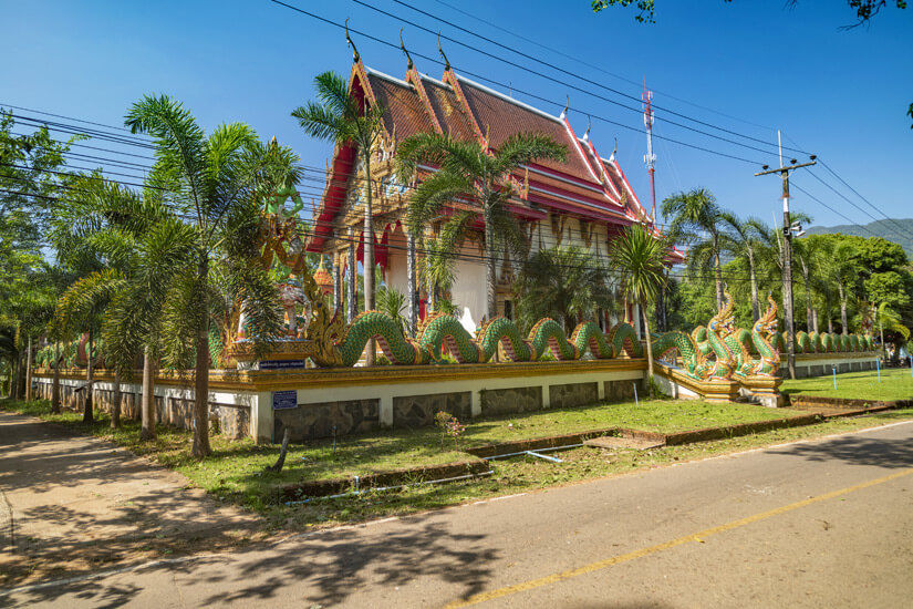 Im Südosten Koh Changs, nahe des Fischerdorfs Salak Phet, liegt der gleichnamige Tempel. Durch eine Mauer samt auffällig grüner Schlange könnt ihr die Tempelanlage gar nicht verfehlen, wenn ihr das alte Fischerdorf besucht. Das hölzerne Bauwerk wird von verschiedenen Figuren “bewacht” und verfügt über bunte Schnitzereien.