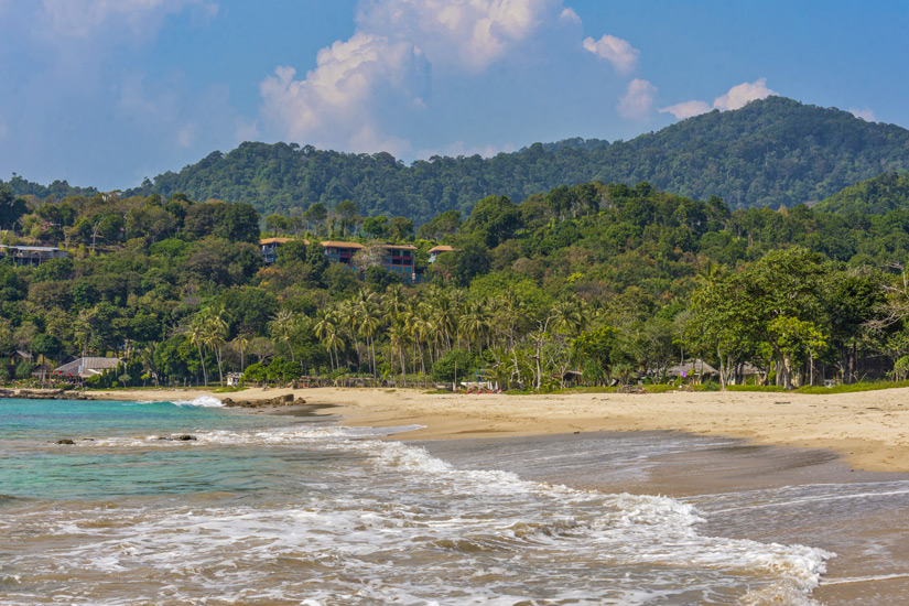 Die Bamboo Bay heißt bei den Einheimischen Ao Mai Pai und befindet sich weit im Süden von Lanta Yai. Dort gibt es nur wenige Hotels, weshalb ihr vermutlich eine längere Anfahrt in Kauf nehmen müsst – doch diese lohnt sich. Die Bamboo Bay ist sozusagen die letzte „belebte“ Bucht vor dem Mu Koh Lanta Nationalpark und liegt am Ende der Küstenstraße. Belohnt werdet ihr für eure Mühen mit einem beinahe menschenleeren, breiten Natursandstrand vor dem Panorama der grünen Berge und glasklarem Wasser, das zum Schwimmen einlädt.