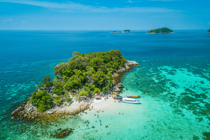 Die Insel Koh Rok liegt nur unweit der Hauptinseln und gilt als beliebtes Ausflugsziel für Taucher. Genau genommen handelt es sich um zwei Inseln, nämlich Koh Rok Noi und Koh Rok Yai. Diese liegen nur rund 200 Meter voneinander entfernt und umschließen ein wunderschönes Korallenriff, das zum Schnorcheln einlädt. Natürlich könnt ihr an den Stränden von Koh Rok aber auch baden, denn diese gelten als mindestens ebenso schön wie die größeren Strände Koh Lantas.