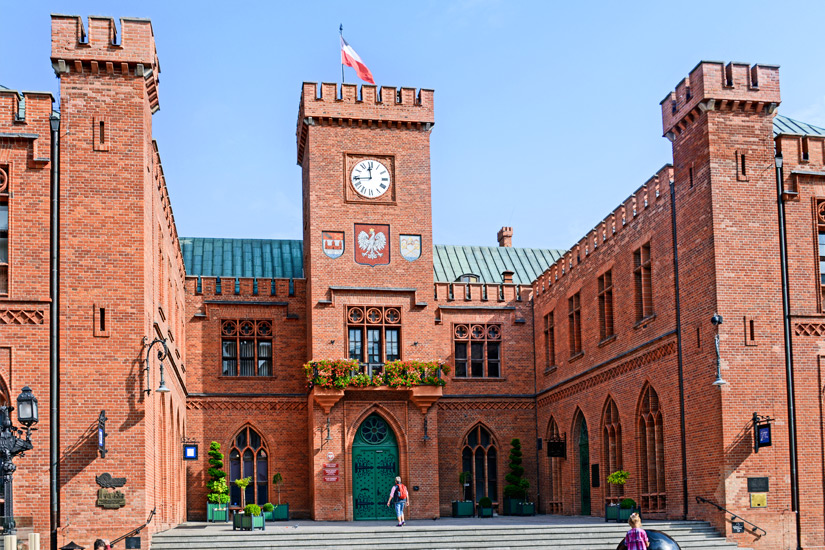 Das Kolberger Rathaus stammt aus dem 19. Jahrhundert und ersetzte den vorherigen mittelalterlichen Bau, der Anfang des 19. Jahrhunderts zerstört wurde. Noch immer ist der Charme des Mittelalters aber spürbar, denn auf den ersten Blick könnte es sich bei dem U-förmig errichteten Gebäude mit zwei Etagen um eine Ritterburg handeln. Das Rathaus fällt allein aufgrund seiner markanten roten Backsteingestaltung sofort ins Auge. Zwar erfolgte Anfang des 20. Jahrhunderts ein Umbau, jedoch veränderte dieser den wesentlichen Charakter des Gebäudes nicht. Tipp: Am rückwärtigen Teil des Rathauses befindet sich eine Säule, die angeblich das Gesicht des Rebellen Jakob Adabar zeigt. Wenn ihr darüber streicht, soll das Glück bringen.