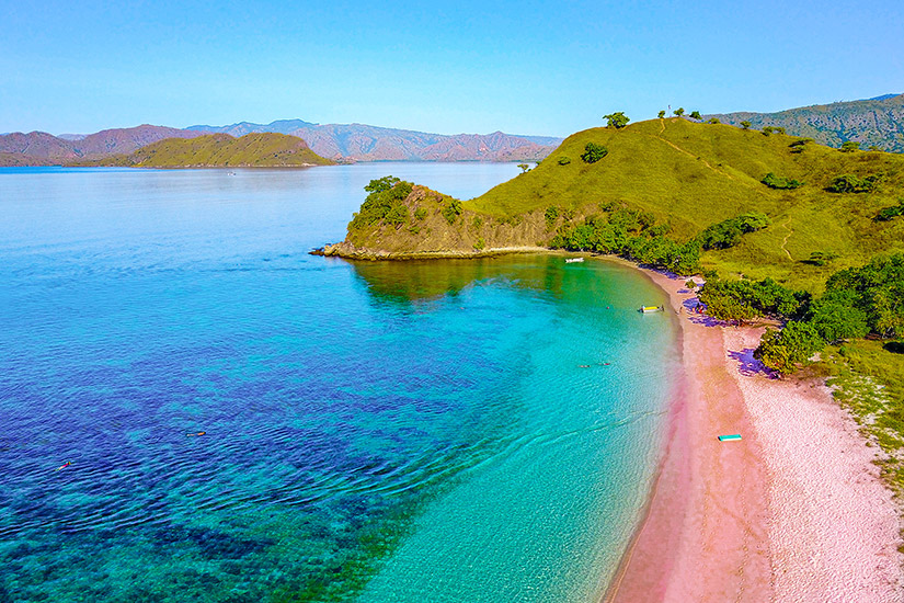 Habt ihr die Riesenechsen bereits gesehen, gibt es ein weiteres Highlight auf der Insel: den Strand Pantai Merah. International ist er besser unter dem Namen Pink Beach bekannt. Sobald ihr am Strand ankommt, wird auf den ersten Blick klar, wie die Namensgebung zustande kam, denn der Sand ist rosafarben. Gäste können sich während des Aufenthalts sonnen, im Meer schwimmen und schnorcheln. Letzteres lohnt sich besonders, denn das Wasser ist klar und bietet die Chance zahlreiche Fischarten zu sehen.