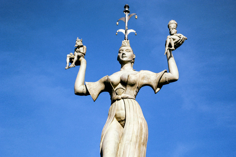 Die Statue Imperia gilt als größte Statue ihrer Art, welche eine Kurtisane zeigt. Ihre Enthüllung in den frühen 1990er-Jahren sorgte daher verständlicherweise erst einmal für eine große Überraschung und auch folgende Diskussionen; immerhin hielt sie in ihren Händen einen Kaiser und einen Papst in Miniaturgröße. Doch die Imperia konnte sich durchsetzen und beeinflusst bis heute maßgeblich das Ambiente des Hafens. Die Figur ist neun Meter hoch, mehrere Tonnen schwer und dreht sich dauerhaft um ihre eigene Achse. Eine Umdrehung benötigt vier Minuten. Die Imperia ist eines der klassischen Fotomotive aus Konstanz, lasst euch diesen Schnappschuss also nicht entgehen!