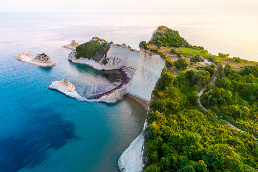 Ein so romantischer wie spektakulärer Ort erwartet euch an der nordwestlichen Spitze der Insel: die Sandsteinklippen am Kap Drastis. Da diese Klippen in Privatbesitz sind, könnt ihr sie leider nicht betreten, aber der umwerfende Ausblick darauf ist schon ein tolles Fotomotiv. Hier gibt es außerdem eine einladende Bar, in der ihr den Tag bei Sonnenuntergang entspannt ausklingen lassen könnt.