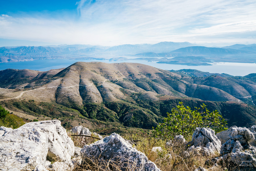Möchtet ihr euch während eures Urlaubs auf Korfu gerne sportlich und in der Natur betätigen, solltet ihr den Pantokrator besteigen. Der Name bedeutet soviel wie „Alleinherrscher“. Dieser mit 906 Metern höchste Berg der Insel beherbergt auf seiner Spitze ein Kloster aus dem 17. Jahrhundert und wartet mit einer historischen Landschaft auf, die an die Mondoberfläche erinnert. Besonders das Ende des Aufstiegs auf den Pantokrator stellt eine sportliche Herausforderung dar. Doch die Mühe lohnt sich, denn von oben habt ihr bei guten Verhältnissen die Möglichkeit bis zum Festland Griechenlands oder sogar Albaniens zu sehen.