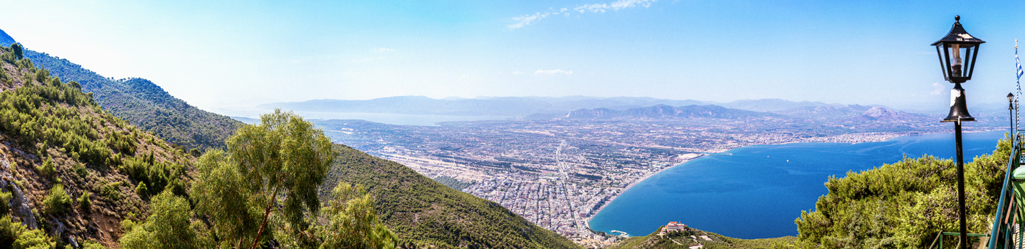 Am Hafen kann man einen Blick auf die griechisch-orthodoxe St. Nicholas Kirche werfen und wer die Augen in die Ferne richtet, sieht die Stadt Loutraki, die sich ebenfalls am Golf von Korinth befindet. Vom Hafen besteht die Möglichkeit, westwärts Richtung Kalamia Beach zu schlendern, wobei ihr die Trireme-Brücke überquert. Diese orientiert sich architektonisch an dem Schiffsbautyp, von dem ihr weiter oben schon gelesen habt. Angekommen am Kalamia Beach könnt ihr die Promenade entlanggehen und euch bei Bedarf über das gastronomische Angebot hermachen. Eine andere Option, den Strand zu erreichen, ist die von Südosten nach Nordwesten verlaufende Straße Geor. Papandreou mit Grünstreifen in der Mitte.