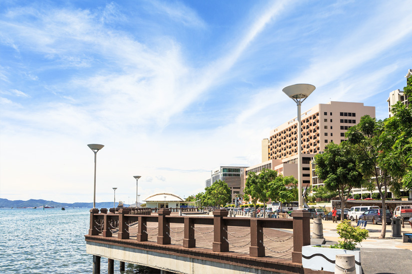 Die Uferpromenade ist bei Touristen besonders beliebt, weil sich hier zahlreiche Einkaufsmöglichkeiten, Hotels und Restaurants befinden. Schlendert gemütlich am bunten Treiben vorbei, lasst im Shopping-Center bei der Schnäppchenjagd die Kreditkarte glühen und genießt den wunderschönen Sonnenuntergang in einer Strandbar. An der Waterfront befindet sich auch das bekannte „I love KK“ Wahrzeichen, bei Urlaubern ein beliebtes Motiv für Selfies.