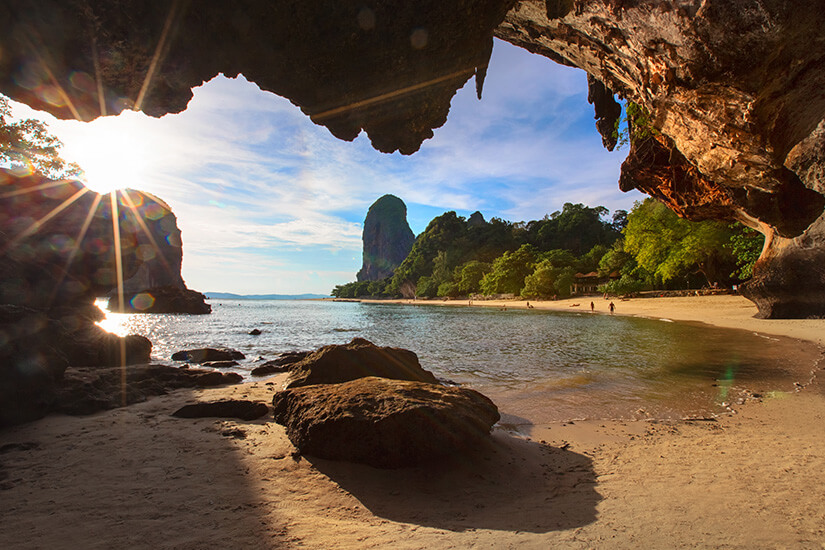 Ebenfalls auf der Railay Halbinsel, befindet sich der Phra Nang Beach. Das Besondere an ihm ist seine Abgeschiedenheit, denn er ist ausschließlich mit dem Boot zu erreichen. Ein Ausflug, welcher sich lohnt, denn vor Ort findet ihr weichen Sand an glasklarem Wasser sowie eine beeindruckende Felsinsel vor dem Strand. Berühmt ist der Phra Nang Beach zudem durch die Fruchtbarkeitsschreine in den Felswänden in Form von holzgeschnitzten Fallussymbolen. Zwischen pyramidenartigen Felsen zieht sich zudem ein Kletterpfad hinauf zu einem lohnenswerten Aussichtspunkt und einer wunderschönen Lagune.