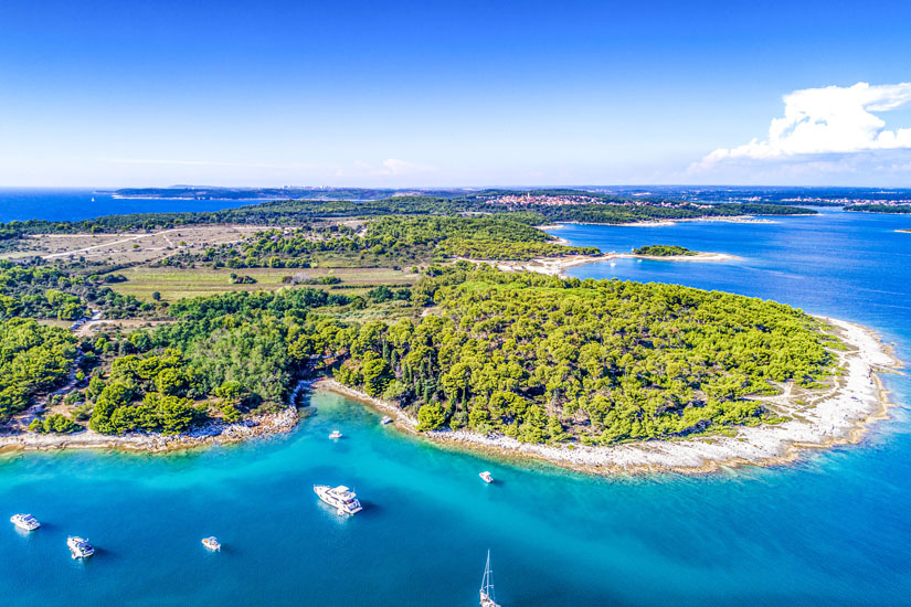 Eine Alternative für Sandstrand-Fans befindet sich ebenfalls auf der Halbinsel Istrien, im kleinen Dorf Medulin. Der gleichnamige Strand misst 1,5 Kilometer und ist wieder durch seinen flachen Verlauf gekennzeichnet. Ihr werdet hier als Familie vorwiegend auf andere Eltern mit Kindern treffen, die diese Ausgangsbedingung für einen risikofreien Badetag lieben. Ihr könnt vor Ort Sonnenschirme mieten, euch aber auch einen Platz unter den schattenspendenden Bäumen suchen.