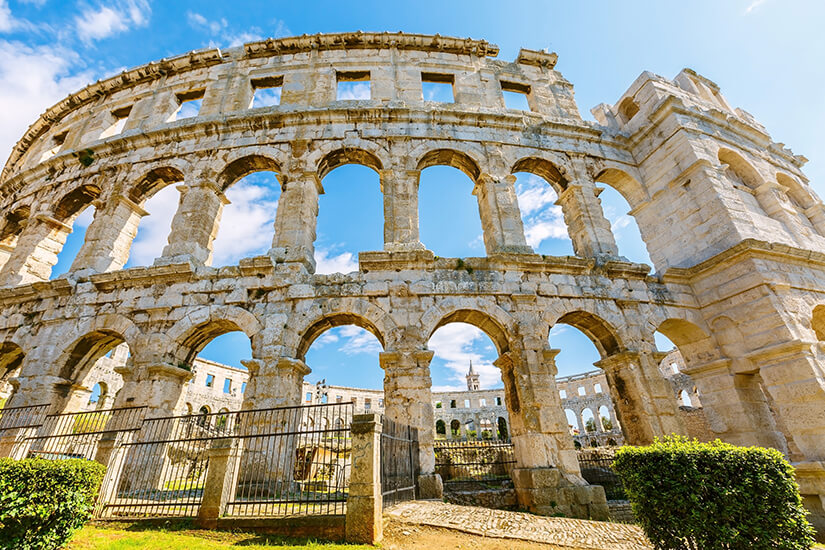 Pula ist vor allem aufgrund des beeindruckenden Amphitheaters aus dem 1. bis 2. Jahrhundert bekannt. Dieses mächtige Bauwerk ist bis heute die nostalgisch schöne Kulisse für Konzerte oder Vorführungen verschiedener Art innerhalb der Stadt. Auch Sehenswürdigkeiten wie das Goldene Tor, das Forum Pula, verschiedene Kirchen oder der Augustustempel lassen das Herz von Kultur-Freunden schneller schlagen. Wie in Split gibt es auch in dieser kroatischen Stadt Gelegenheiten für eine Auszeit am Strand. Zudem befindet sich einer der schönsten Nationalparks des Landes, der Brijuni Nationalpark, in der Nähe.