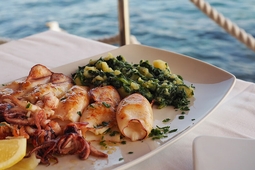 Knoblauch und frisches Fleisch vom Grill (Cevapcici) dominieren in der kroatischen Küche, doch auch Vegetarier müssen nicht in die Röhre schauen. Herzhafte Eintöpfe und Suppen, die mitunter Einflüsse von verschiedenen internationalen Küchen aufweisen und daher immer anders schmecken können, machen euch unter der Sonne Kroatiens satt und glücklich. Entlang der Küstenregion erwartet euch natürlich vorwiegend Leckeres aus dem Meer, beispielsweise Kabeljau und Lignje (gefüllter Tintenfisch). Eher als Geheimtipp gelten die Arambašići, das sind Sauerkrautröllchen mit Rind- und Schweinefleisch.