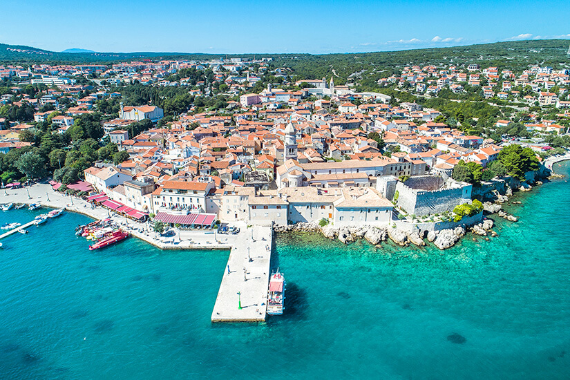 Die Insel Krk ist die größte Adriainsel in Kroatien. Sie liegt weit im Norden in der Kvarner-Bucht und, um sie zu erreichen, müsst ihr nicht einmal in eine Fähre steigen, da sich die Insel seit 1980 auch bequem per Brücke erreichen lässt.