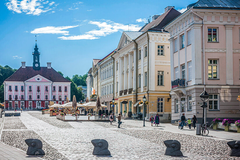Selbstverständlich ist Tartu auch für sich alleine genommen eine Reise wert und keinesfalls nur ein Ausgangspunkt für Ausflüge ins Umland. Von der Stadt gingen im 19. Jahrhundert Impulse zur Nationswerdung aus, was sich beispielsweise in ersten estnischen Zeitungen, Kulturvereinen oder einer in dieser Zeit gegründeten Universität widerspiegelt. Ein Anziehungspunkt Tartus ist der Rathausplatz mit seiner in Rot und Rosa gehaltenen Bürgervertretung und die Gastronomie mit ihrer Außenbestuhlung bei schönem Wetter. Dort trefft ihr zudem auf den Brunnen “Küssende Studenten”, die einen Regenschirm über sich halten.