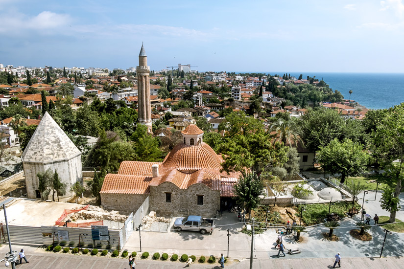 Die Kaleiçi-Moschee wurde bereits im 17. Jahrhundert erbaut. Sie ist das älteste muslimische Gotteshaus der Stadt und beeindruckt mit dem imposanten weißen Minarett. Zudem könnt ihr verschiedene Bogenfenster bestaunen, die sich unterhalb der Kuppel erheben.