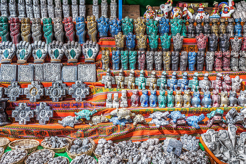 Der Mercado de las Brujas im Zentrum von La Paz ist ein Ort voller Geheimnisse und Mythen. Hier findet ihr alles, was das spirituelle Herz begehrt: Amulette, Zaubertränke, getrocknete Kräuter und sogar Lama-Föten, die als Opfergabe für Pachamama – Mutter Erde – dienen. Der Hexenmarkt ist fester Bestandteil des urbanen Lebens und zugleich Spiegel der tief verwurzelten Aymara-Traditionen. Er ist bunt, chaotisch und faszinierend.