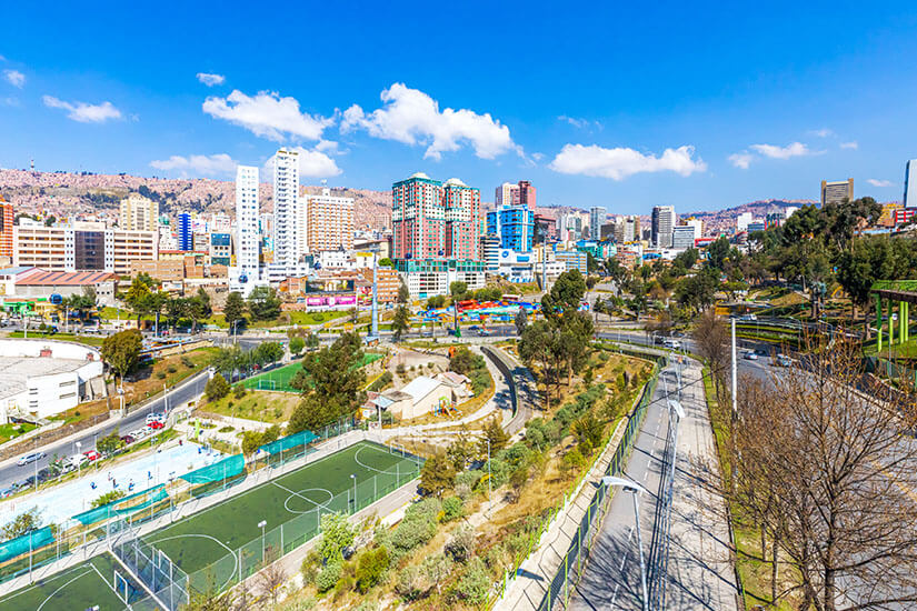 La Paz erreicht ihr am besten über den internationalen Flughafen El Alto, der mit 4.061 Metern einer der höchstgelegenen der Welt ist. Von Europa aus führt der Weg meist über Verbindungen via Lima, Bogotá oder Miami. Vom Flughafen gelangt ihr in rund 30 Minuten mit dem Taxi oder Shuttle ins Stadtzentrum – je nach Verkehr. Achtung: Direkt nach der Ankunft solltet ihr euch nicht überfordern. Höhenkrankheit ist beim ersten Besuch in La Paz keine Seltenheit.