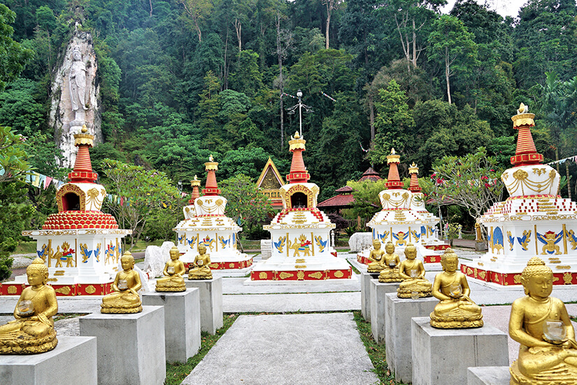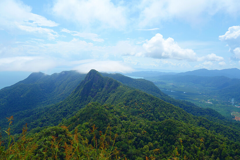 Hoch hinaus geht es bei eurem Ausflug auf den höchsten Berg von Pulau Langkawi. Er zählt eine Höhe von 881 Metern und ist umgeben von 5.000 Hektar Regenwald, welche als Waldschutzgebiet eine ursprüngliche sowie artenreiche Erfahrung bieten. Wer nicht zu Fuß gehen will, kann viele Teile des Bergs im Herzen der Insel mit dem Roller oder Auto erreichen. Der Ausflug lohnt sich, denn auf dem Gipfel bietet euch ein Turm eine Rundumsicht über die gesamte Insel – und weit darüber hinaus.