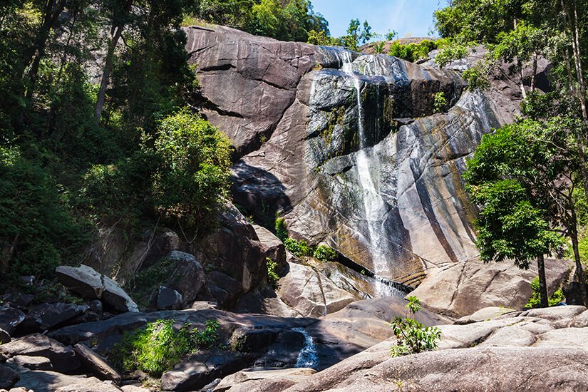 Zuletzt gibt es auf Langkawi noch eine Vielzahl an imposanten Wasserfällen zu bestaunen. Der bekannteste und sehenswerteste dieser Wasserfälle lautet auf den Namen Telaga Tuju Waterfall. Er wird auch als Seven Wells Waterfall bezeichnet. Vom Parkplatz aus erreicht ihr diesen in nur wenigen Gehminuten. Ganze 90 Meter fällt das Wasser hier in die Tiefe und wer will, kann sogar darunter baden gehen. Weitere lohnenswerte Wasserfälle auf Langkawi sind die künstlich angelegten Langkawi Falls sowie der Temurun Waterfall und Durian Perangin Waterfall.