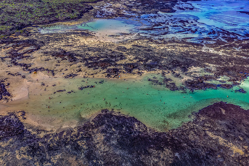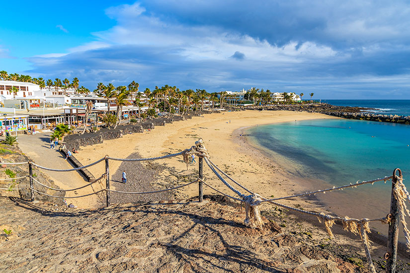 Bei den verschiedenen Badestellen zeigt sich Lanzarote von ihrer besten Seite. Ihr werdet von der beeindruckenden Vielfalt überrascht sein und sehen, wie vulkanische Kräfte traumhafte Paradiese schaffen können. Playa Grande in Puerto del Carmen ist der bekannteste und längste Strand der Insel und bietet euch alles für einen perfekten Tag am Meer. Es gibt eine komplette Infrastruktur mit Liegestühlen, Sonnenschirmen und zahlreichen Strandbars. Die Promenade dahinter lädt zu gemütlichen Spaziergängen ein, während das ruhige Wasser ideal für Familien mit Kindern ist. Sportaffine finden hier Angebote vom Jetski bis zum Parasailing.