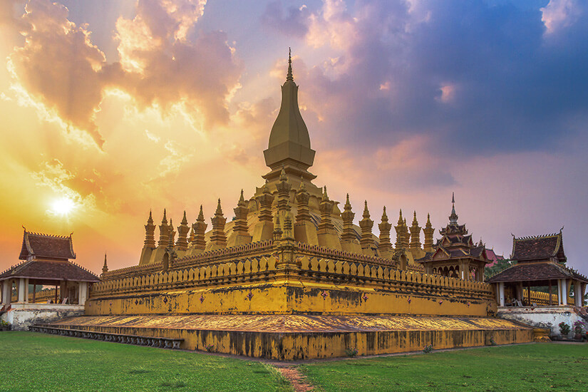 Dieses Wahrzeichen des Landes stammt aus dem 16. Jahrhundert und ihr könnt es in der Hauptstadt Vientiane bewundern. Der Stupa Pha That Luang ist ein buddhistisches Bauwerk, das Buddha und seine Lehre repräsentiert. In diesem Fall vereint er den Buddhismus mit der laotischen Kunst. Es ranken sich viele Legenden um den Stupa, in dem viele Reliquien aufbewahrt werden. Einerseits soll sich dort ein Heiligtum der Mon befunden haben, andererseits wird von Abgesandten des Königs Ashoka berichtet, die im Jahr 307 vor Christus eine Buddha-Reliquie dorthin brachten. Ein dritter Mythos besagt, es hätten an diesem Ort zwei Nagas, schlangenartige Wesen, residiert.