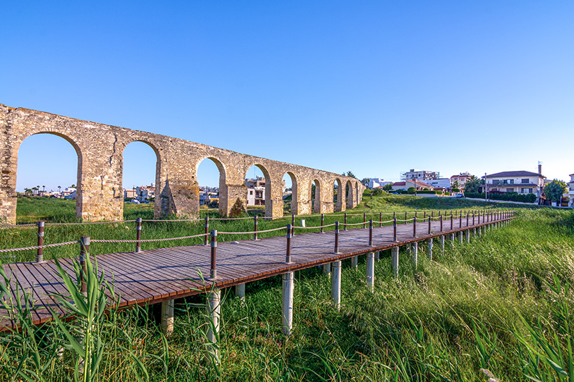 Das Bekir Pascha Aquädukt – auch als Kamares-Aquädukt bekannt – aus dem 18. Jahrhundert ist ein gut erhaltenes Beispiel für die beeindruckende osmanische Baukunst dieser Zeit. Die Anlage mit ihren 75 Bögen diente bis zum Jahr 1939 zur Wasserversorgung der Stadt.